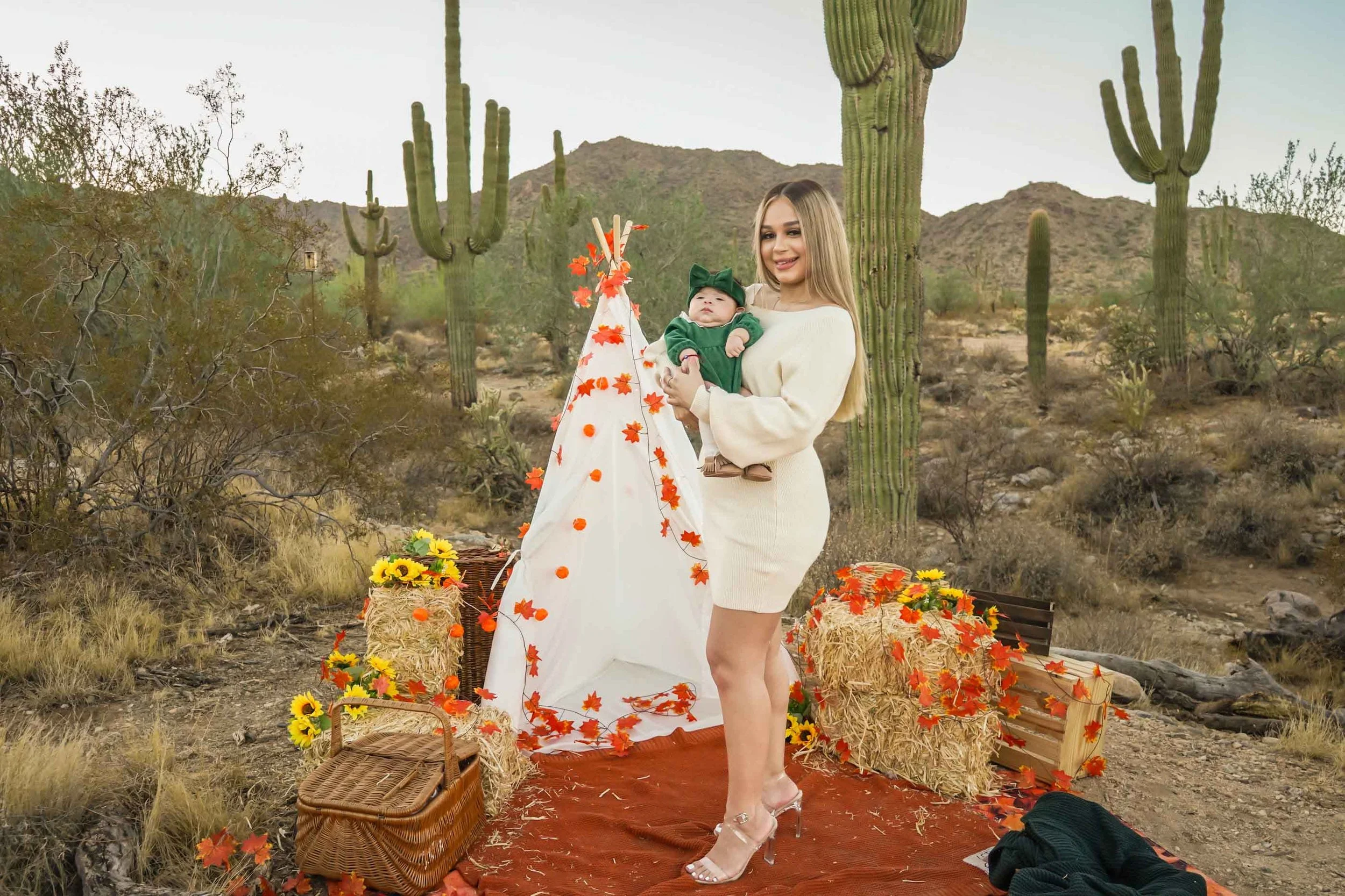 Choose from three beautifully styled studio setups or from two available outdoor locations: White Tank State Park - with desert cactus scenery, or